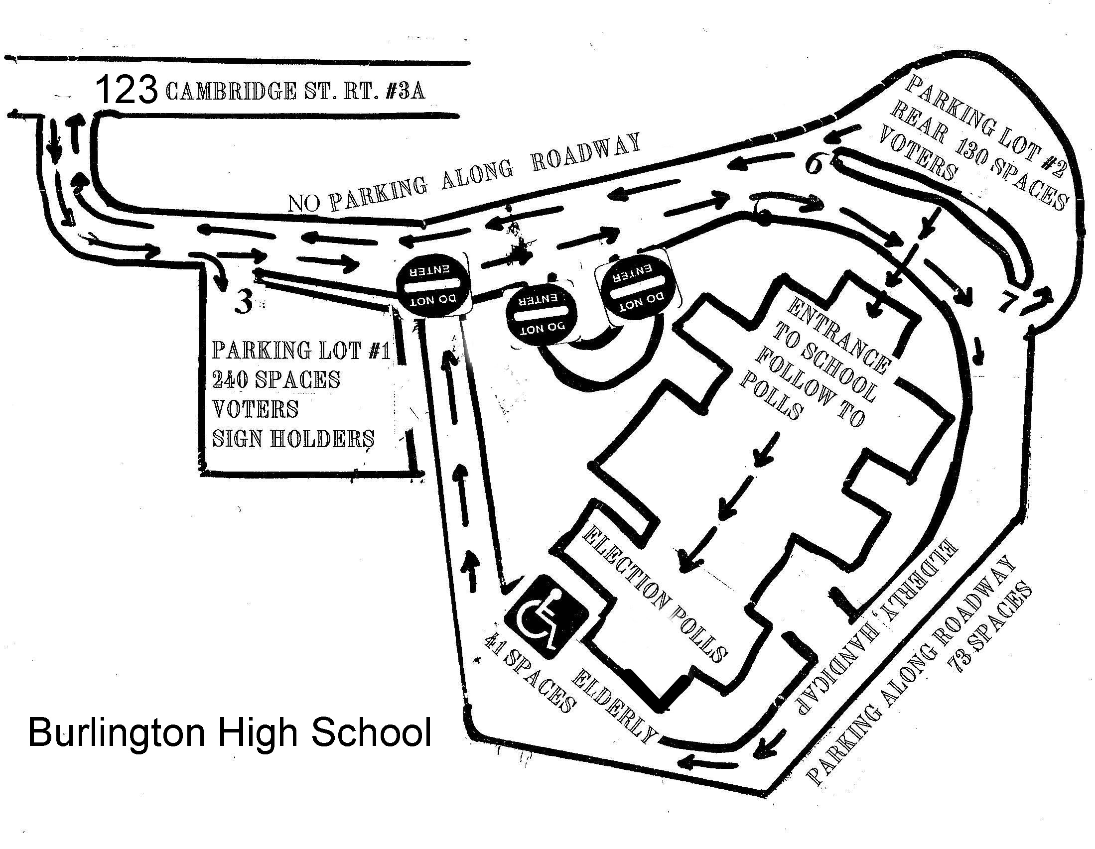 All voting is conducted at the Burlington High School on Cambridge Street for all elections.