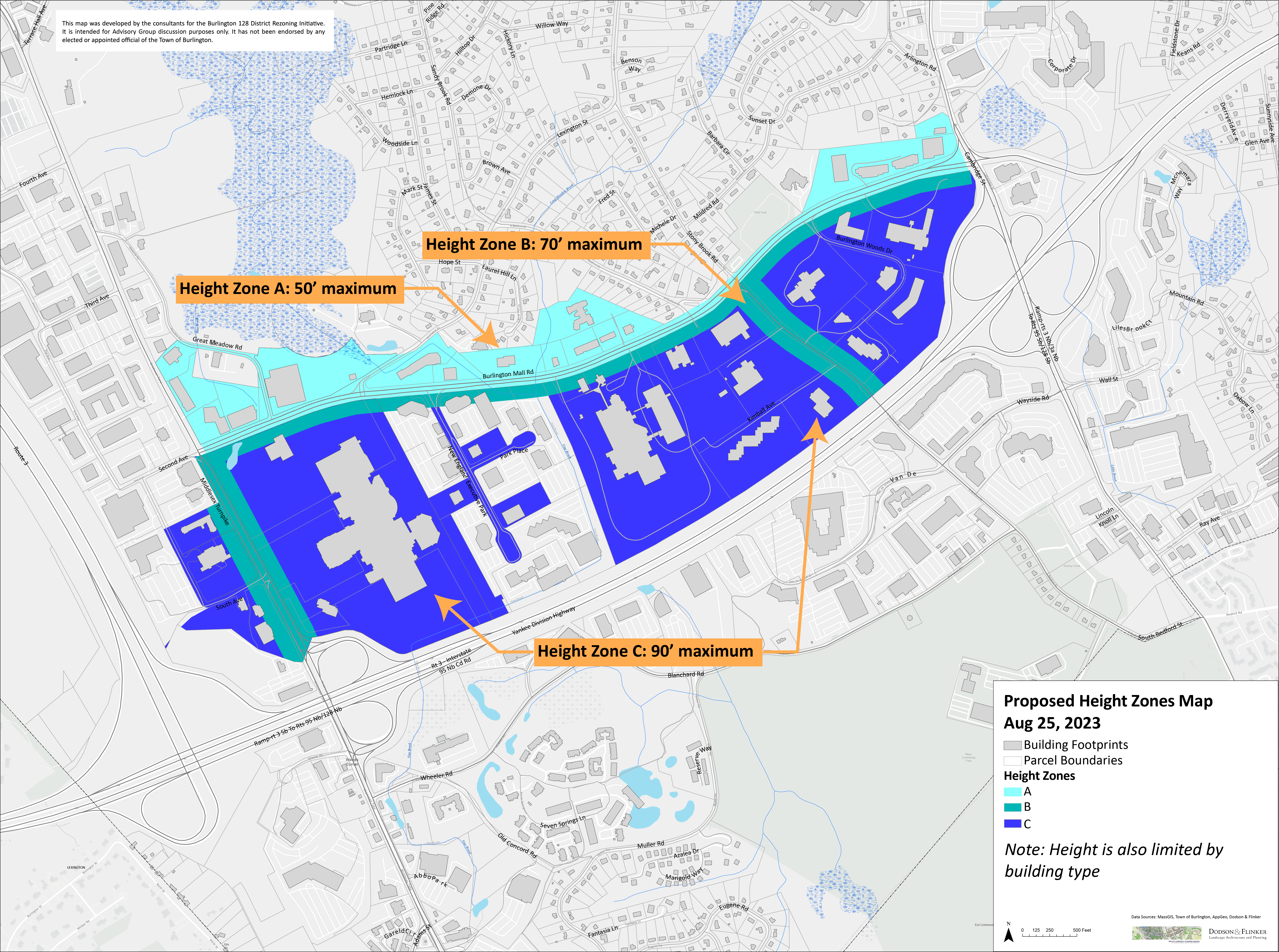 The mixed-use zoning proposal includes 117 acres of private property comprised of several parcels, including those that comprise the Burlington Mall, Kohls, and Burlington Square area.
